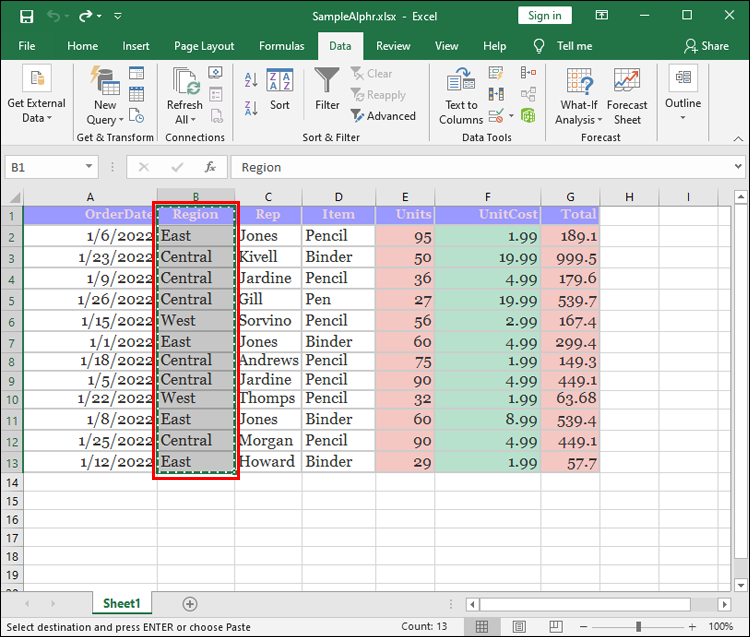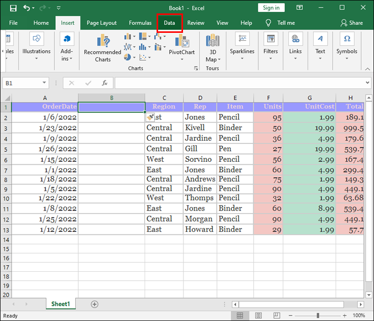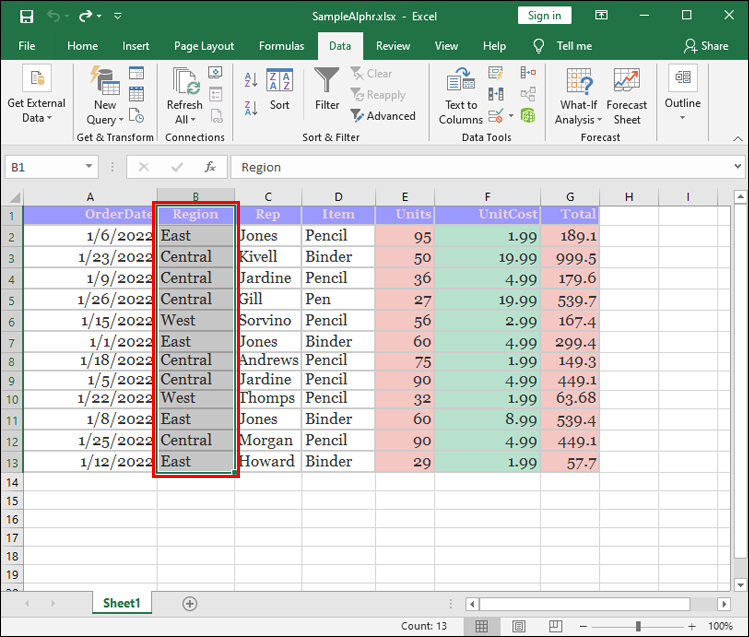 - Select the data you wish to rearrange and go to your “Data” tab.