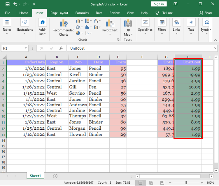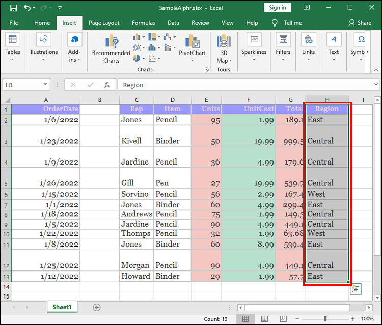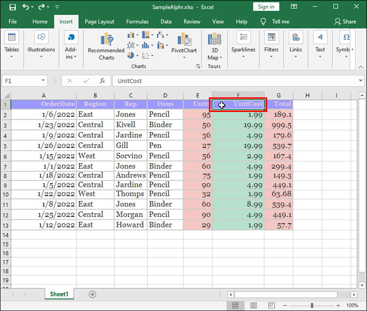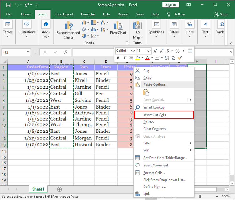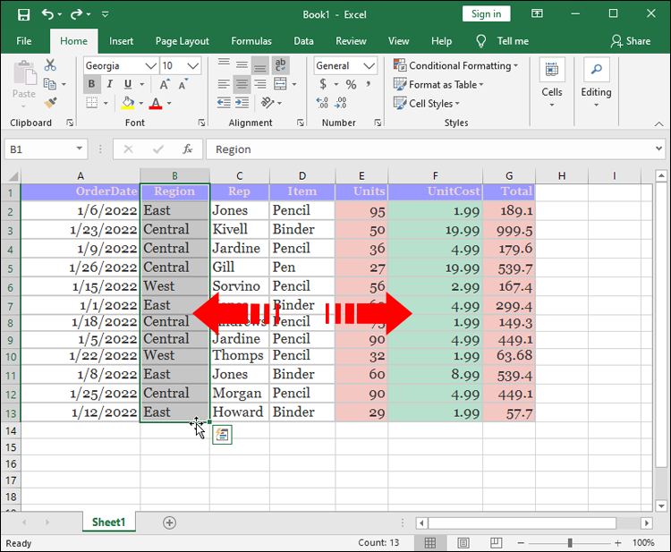 The final method of rearranging columns is straightforward. It requires you to cut a column and paste it to a new location. The process is very simple: