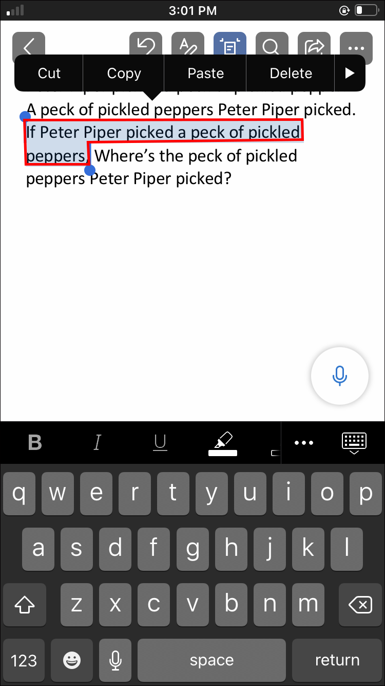 Rearranging pages, or “moving text,” in a Word document on your iPhone is similar to the methods used on other devices. You should use the cut-and-paste method. As previously noted, pay special attention when you select the text you’d like to move. It’s easy to miss a word or two, or even a few characters.
