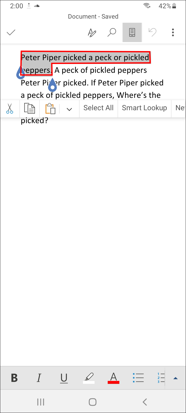 To move text or rearrange pages in Word on an Android, you’ll need to rely on the cut-and-paste method. Please note that when doing so, it’s very important to ensure that you’ve selected all of the text that you’ll be moving. It’s far too easy to miss a word or a couple of characters.