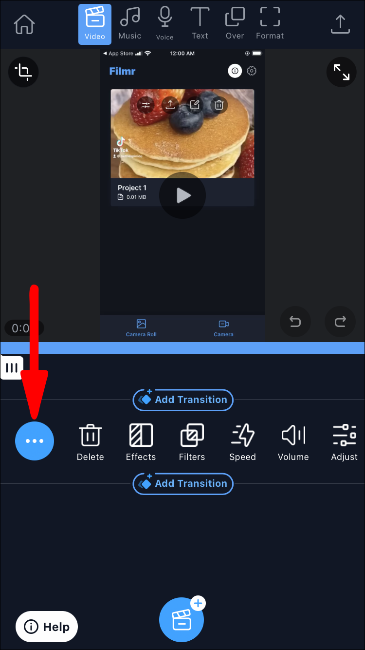 - Tap the three-dot icon in the left corner of the editing timeline.