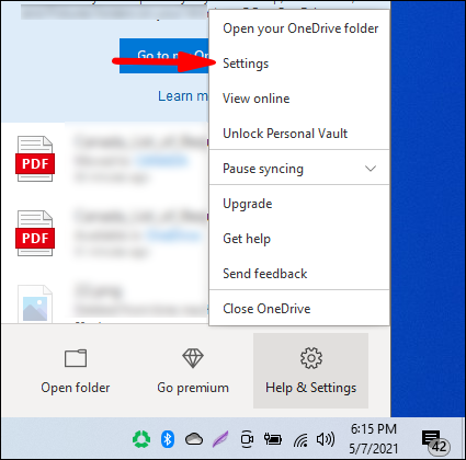 1. Click on the OneDrive icon in the notification area at the bottom of the screen.