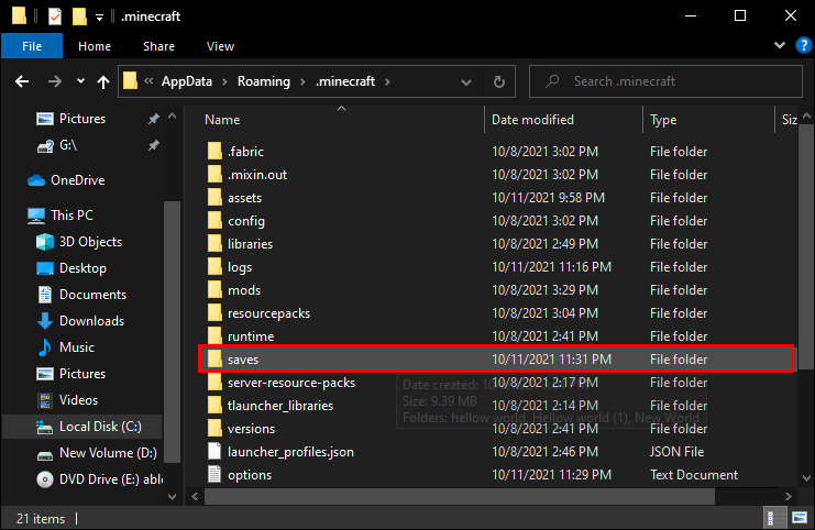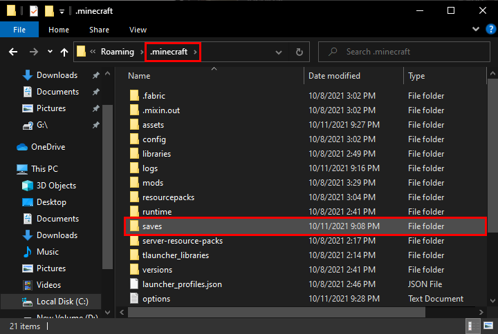 - Once in “%Appdata%”, go to the “.minecraft” folder, then to saves.