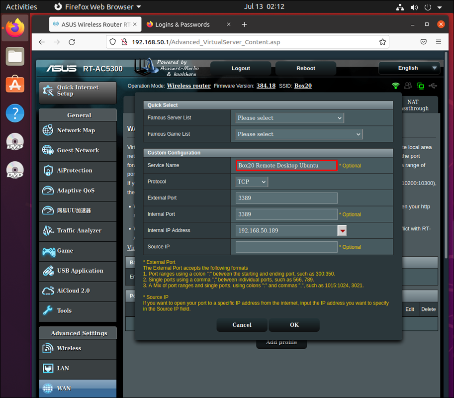 - Check the router that connects to your Ubuntu PC to enable port forwarding.
