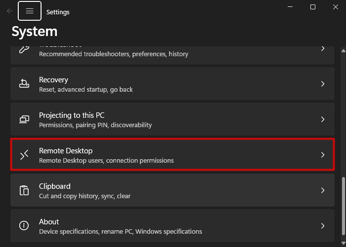 - Find and click on “Remote Desktop.”