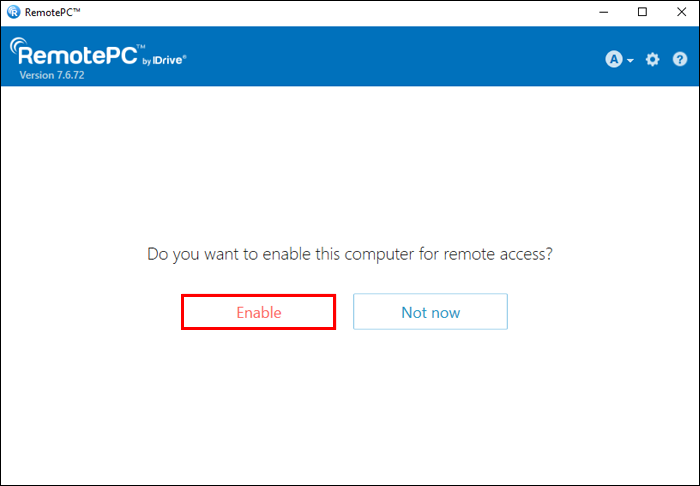 - Once you have finished the above steps, click “Enable Now” to add your computer to your RemotePC account.