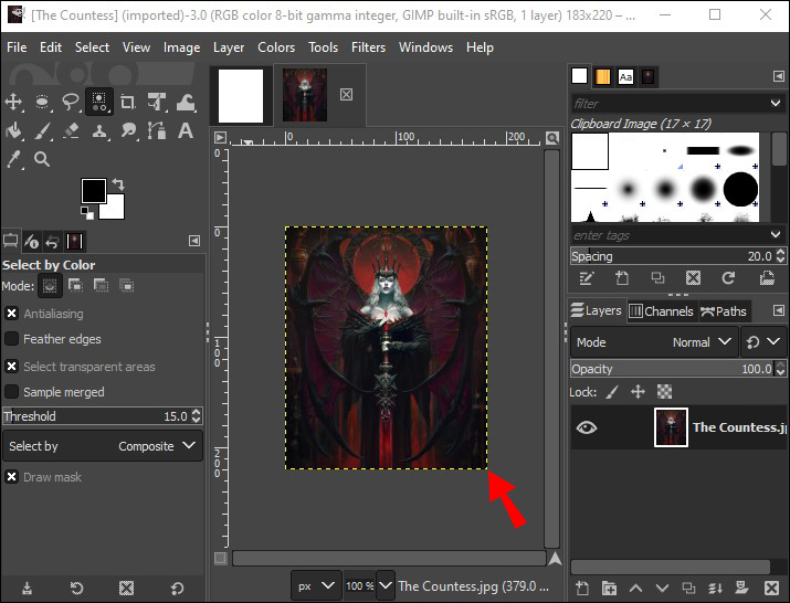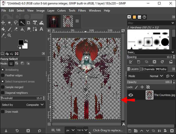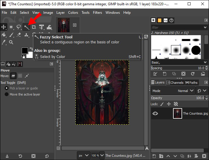 - Select the “Fuzzy Select” tool or click on “U.”