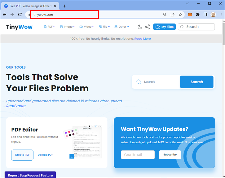- Open your favorite browser and visit TinyWow.com