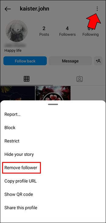 - Tap on the “Three dots” icon and choose “Remove follower.”