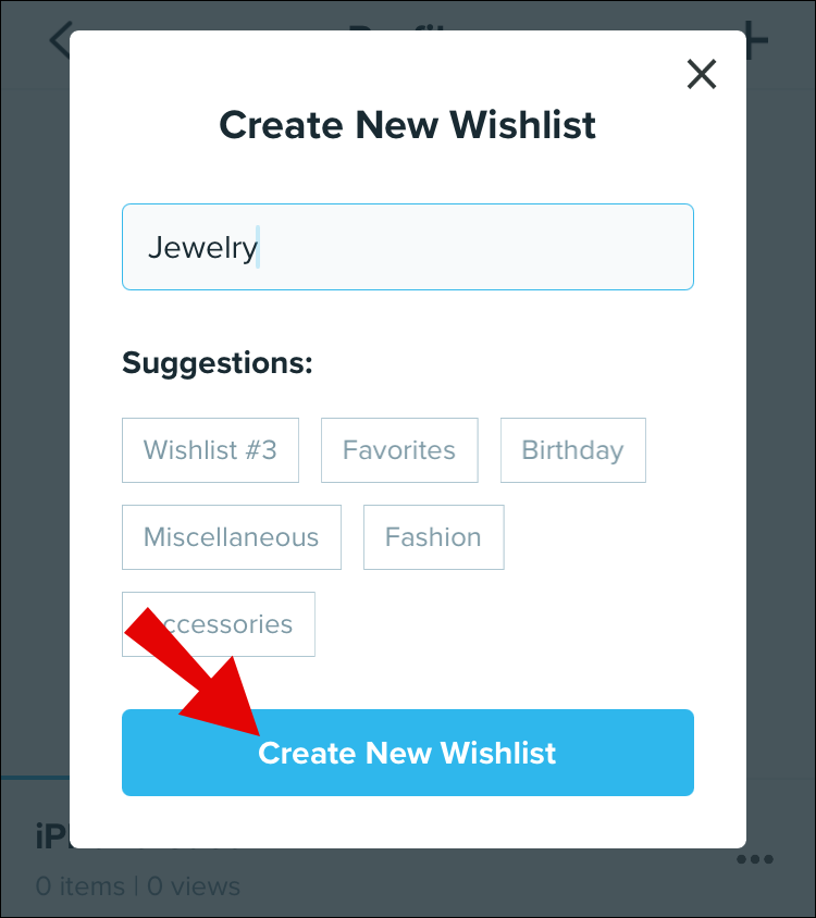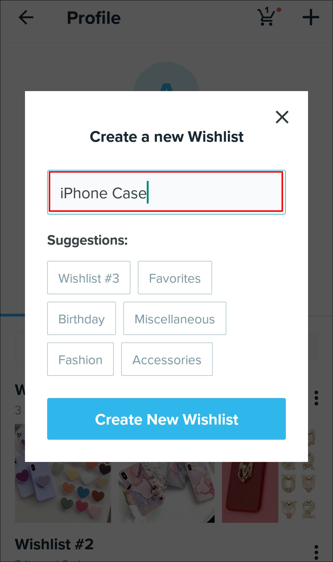 - Type the name of your Wishlist into the “Wishlist Name” field or select one of the suggestions.