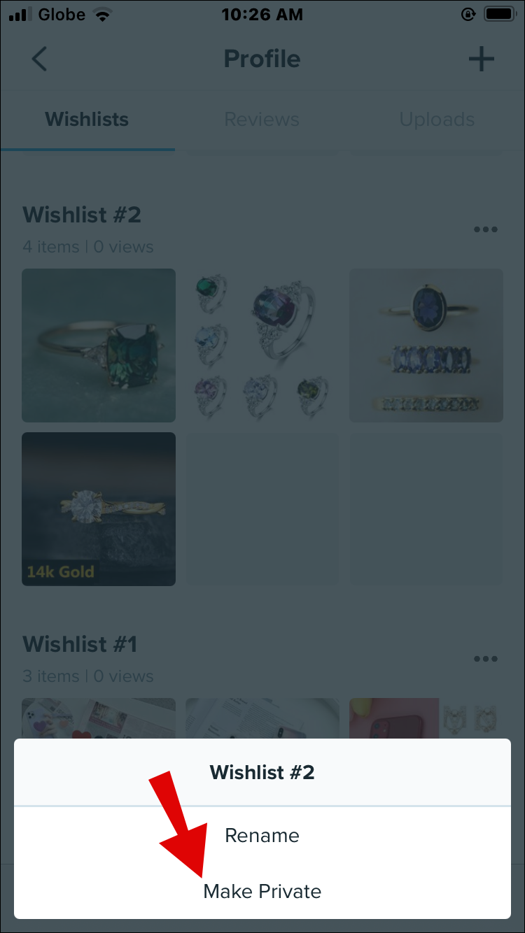 - Select “Make Private.” A lock icon will appear next to the Wishlist’s name.