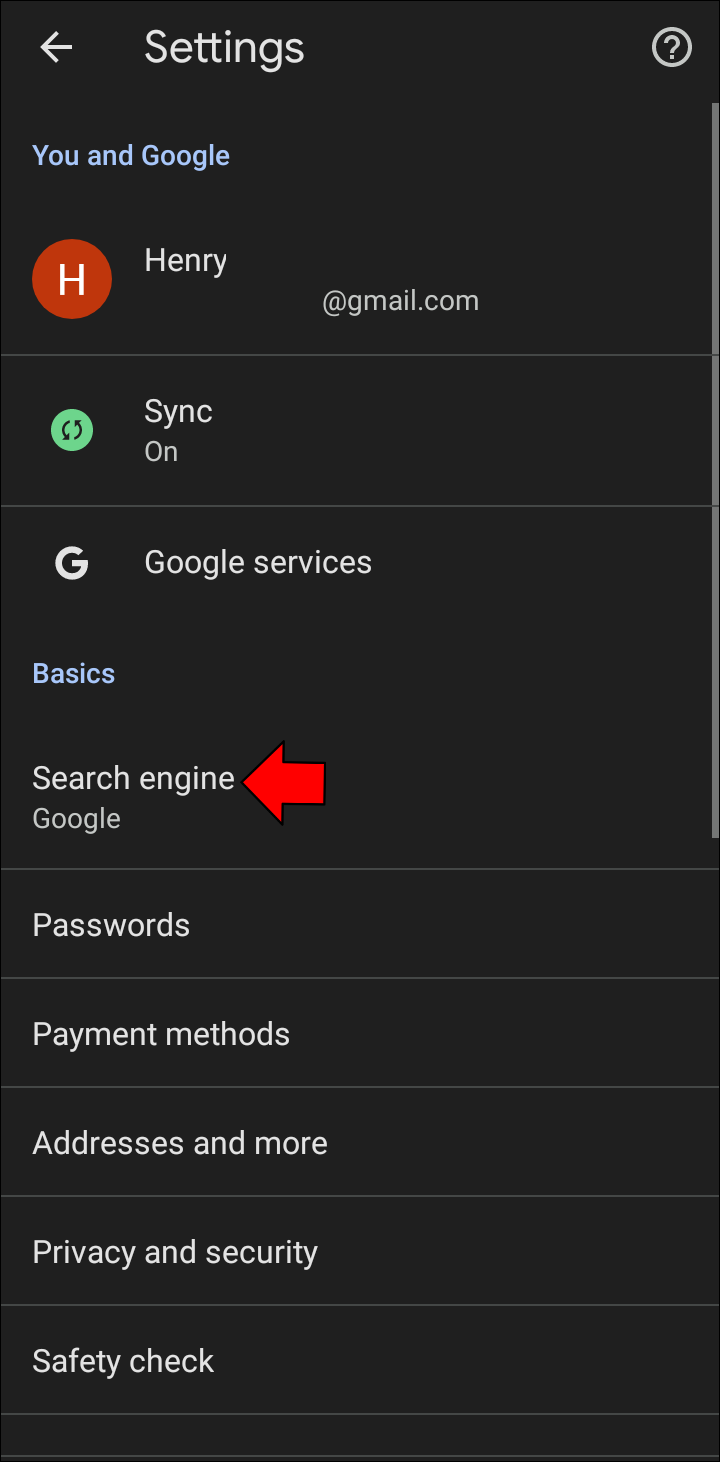 - Locate and press “Search engine.”