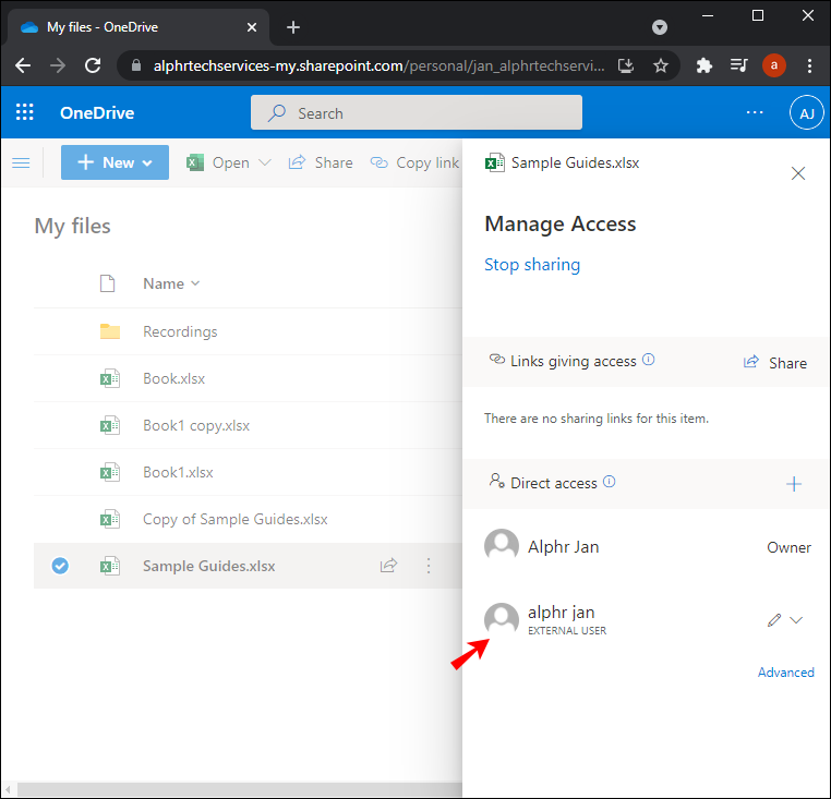 If you prefer using the online version of Excel 365, you can still remove permissions via OneDrive.