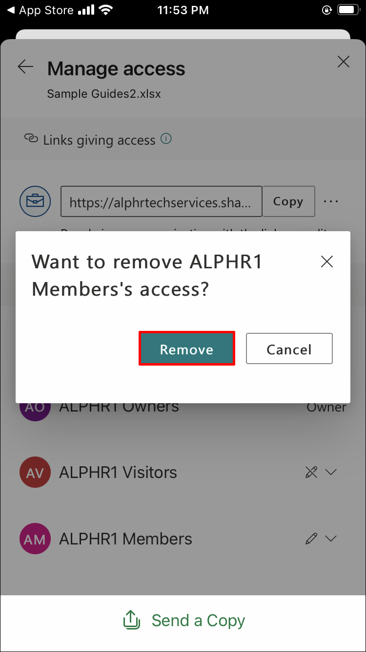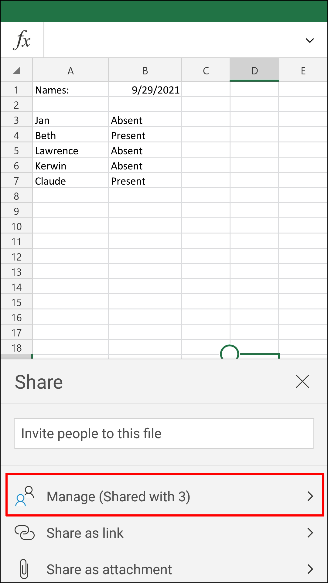 You also have the option to remove or change shared access on Excel on the mobile app as well. Here’s how you would do it on an iPhone: