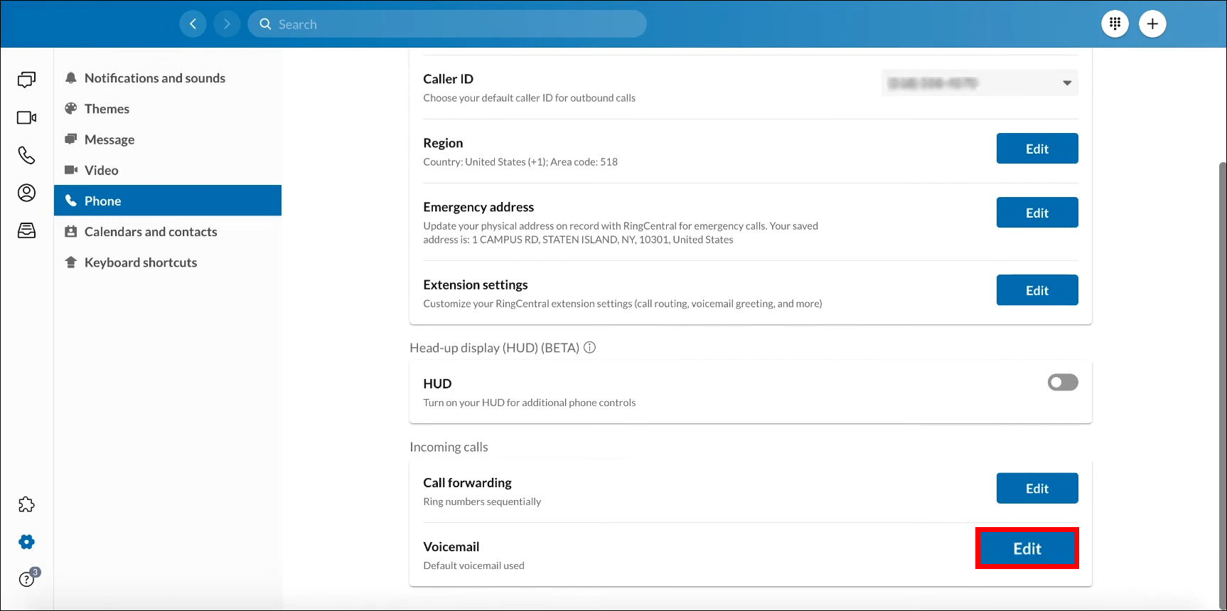 1. Go to “Edit Voicemail” in the lower left corner.