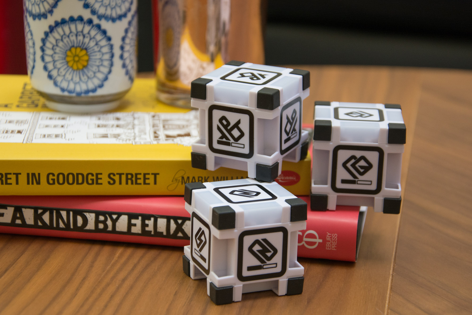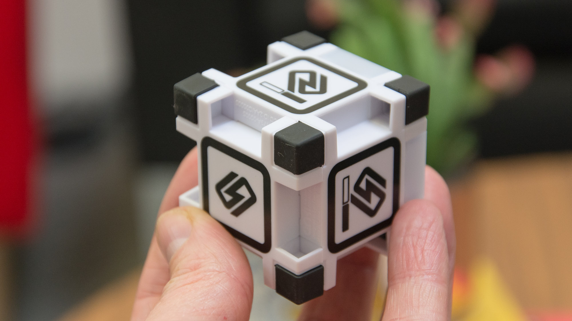 Speaking of Cozmo’s cubes, each Cozmo is sold with three cubes with small rubber corners and emblazoned with geometric shapes. One cube is small enough to fit in your hand, but carrying more than one can be tricky, and they light up depending on the activity. The cubes act as play pieces when Cozmo challenges you to games. They’re also used to “feed” the robot and Cozmo will interact with them when in Freeplay mode, making Cozmo fun to watch as well as play with.