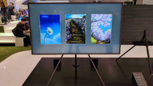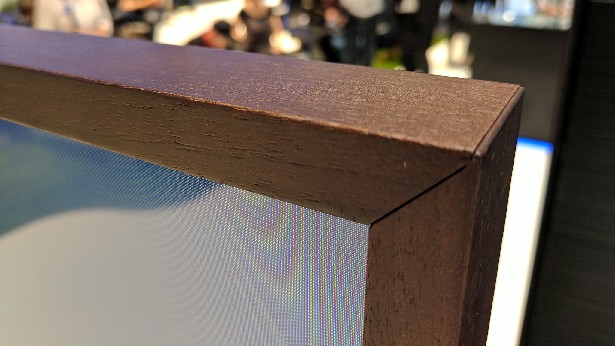 The wood frame surround on each TV is also completely customisable, allowing it to blend in with the other artwork featured in your home. Unfortunately, bezels are sold separately, but having seen the Walnut and Beige Wood finishes – there’s also a straightforward White – they really do look beautiful in the flesh.