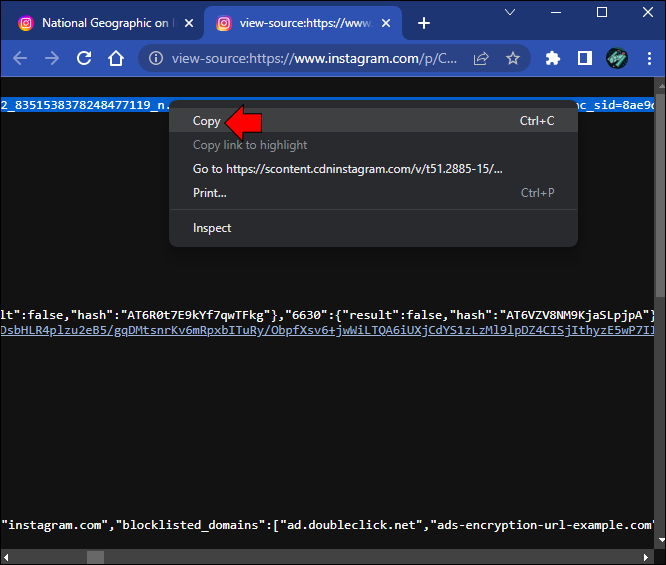 - Click on the three dot icon, then select “Go to post.” Right-click the photo, then choose “View Page Source.”