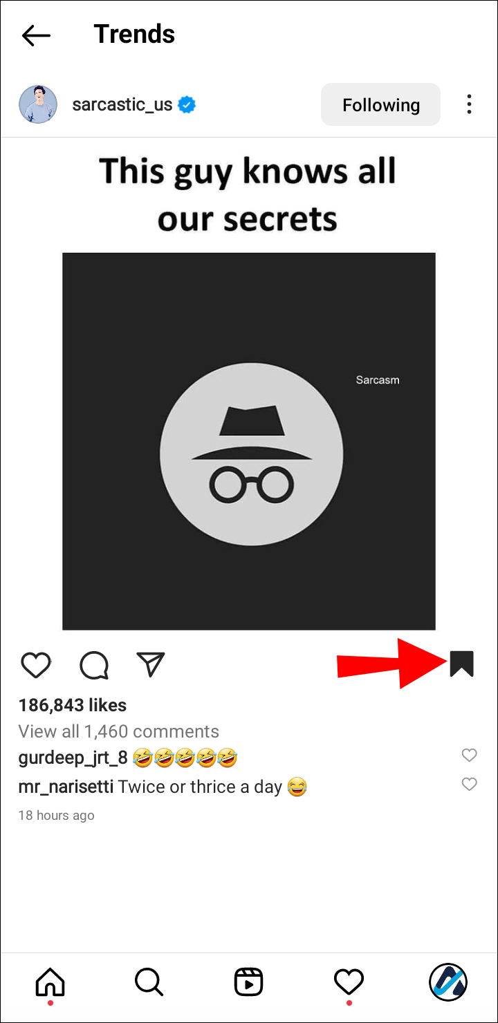 - Find the post you want to save, then tap the ribbon icon beneath it.