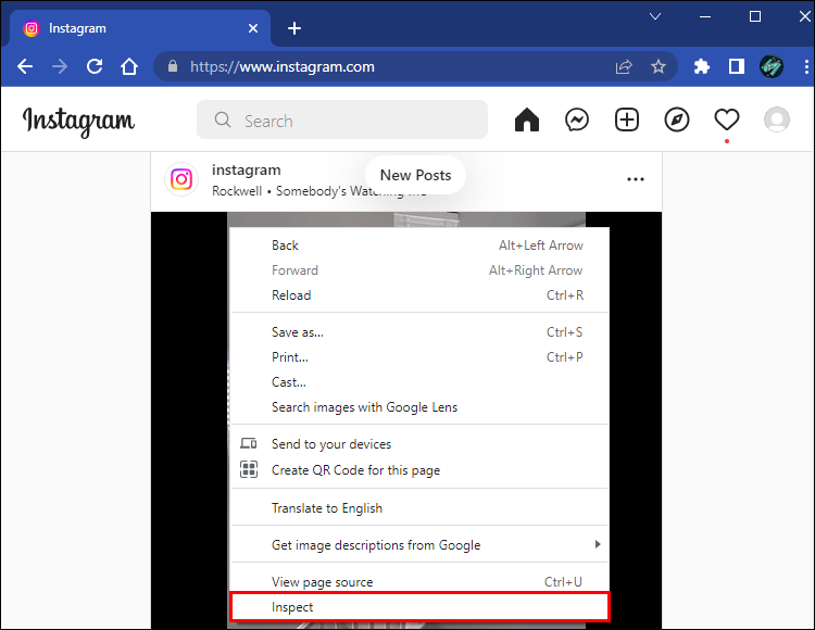 - Right-click on it, then from the bottom of the popup, select “Inspect.”