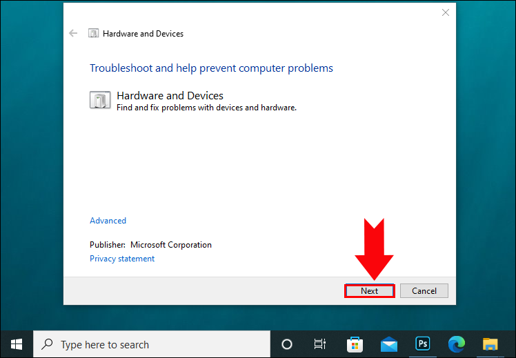 This will start the troubleshooter, so sit back and relax while the troubleshooter detects issues with your hardware and devices and fixes them. - Now restart your PC to see whether the issue is fixed.