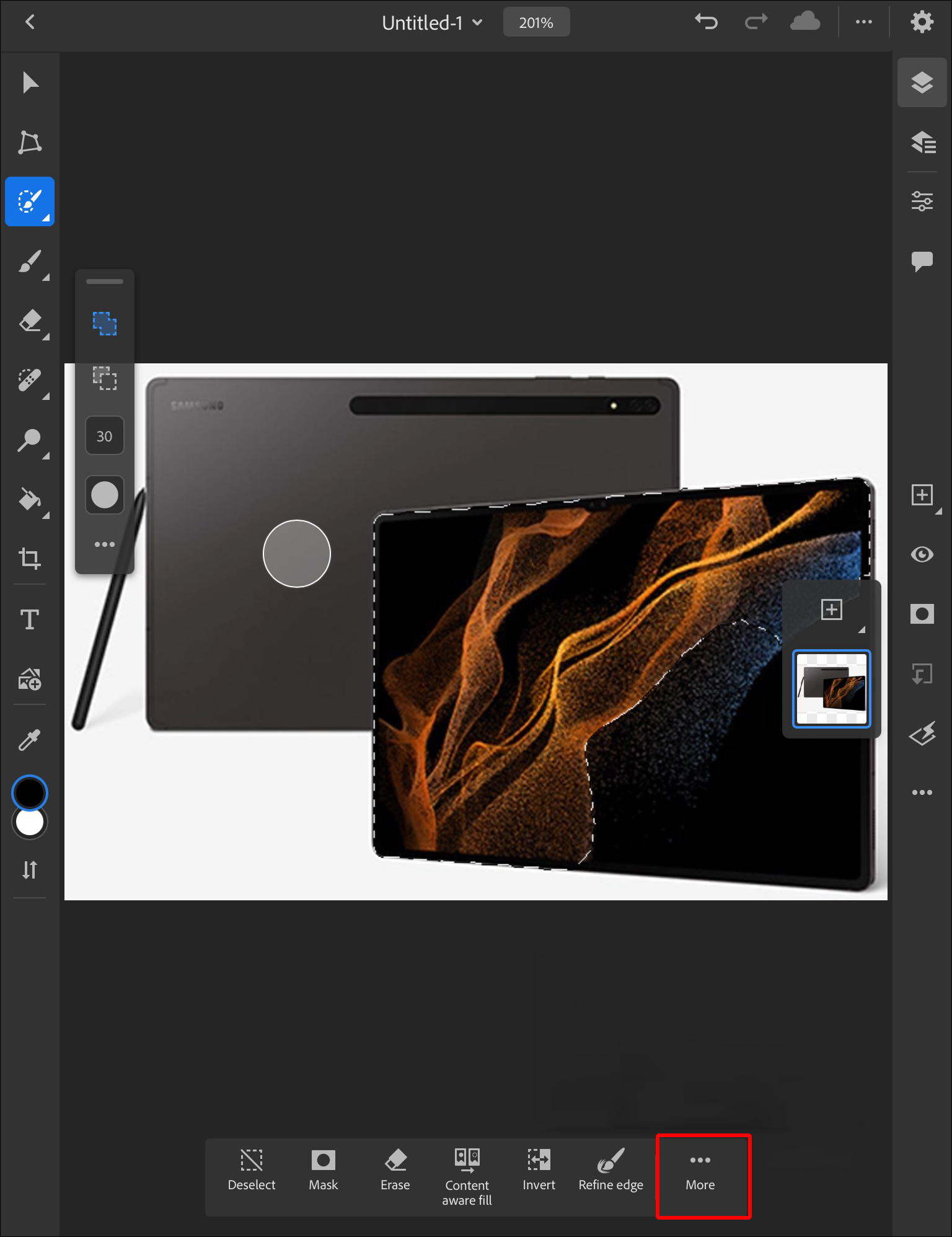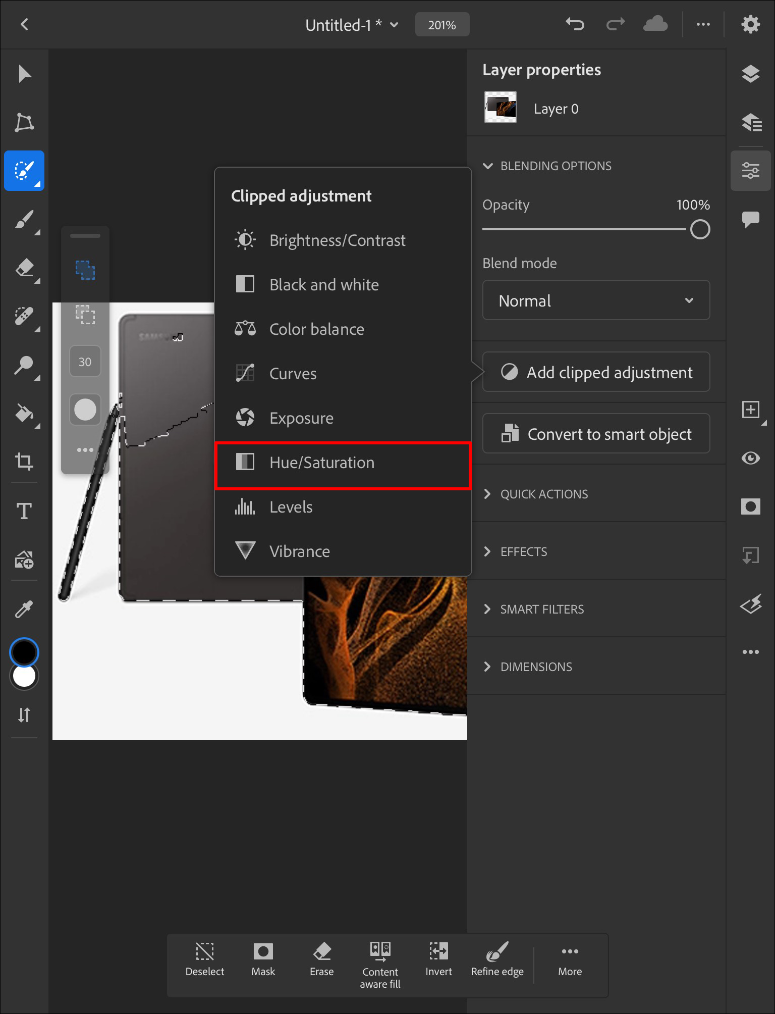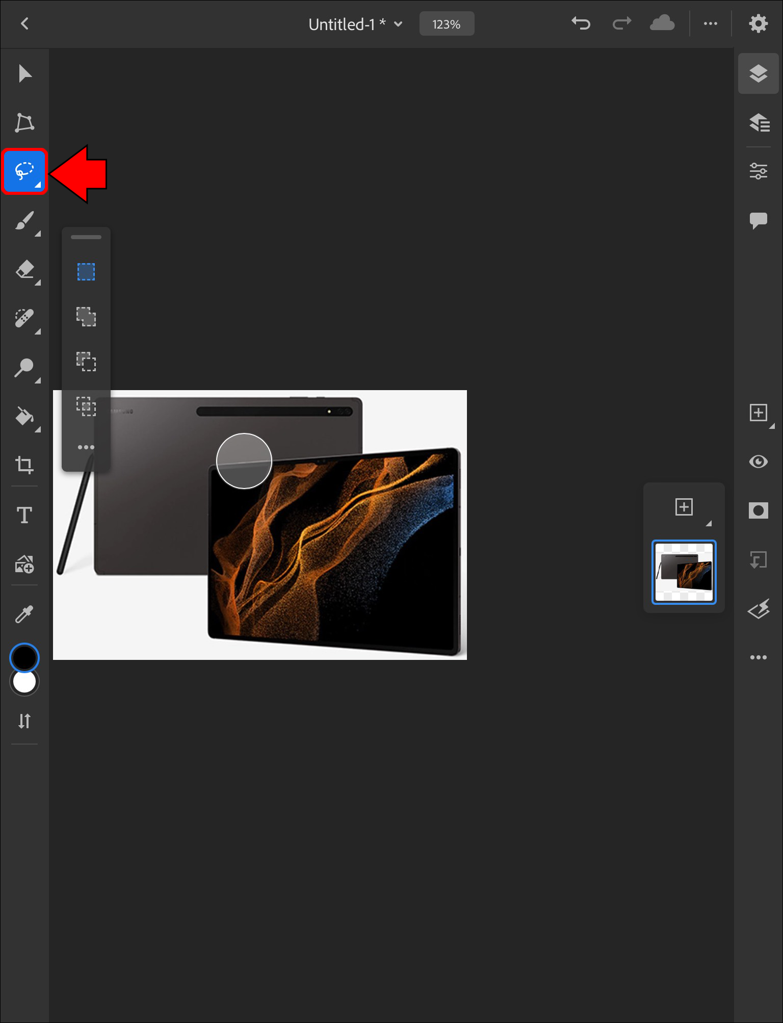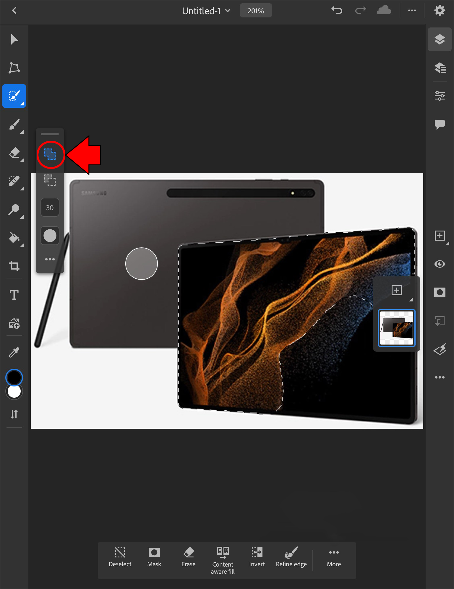 Now you’re ready to get down to work. To make a selection in Photoshop on an iPad, do the following.