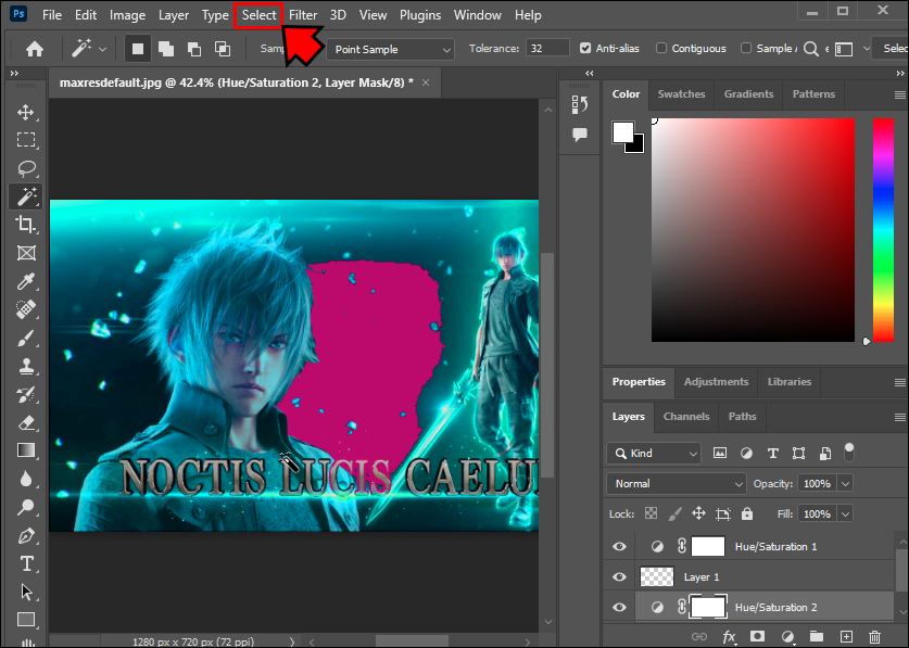 The Color Range option will work perfectly for simpler projects or when you’re in a hurry. However, this option might not be the best route if the pixels you want to change aren’t adjacent in the picture. If that’s the case, we suggest using the Magic Wand tool.