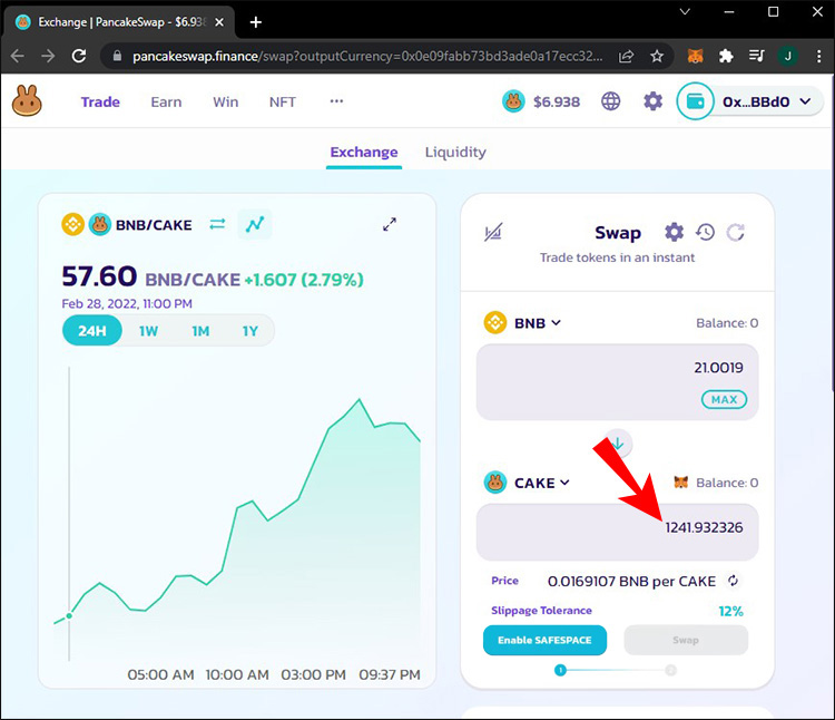 Now that you’ve connected your wallet to PancakeSwap, here’s what you need to do to sell your tokens:
