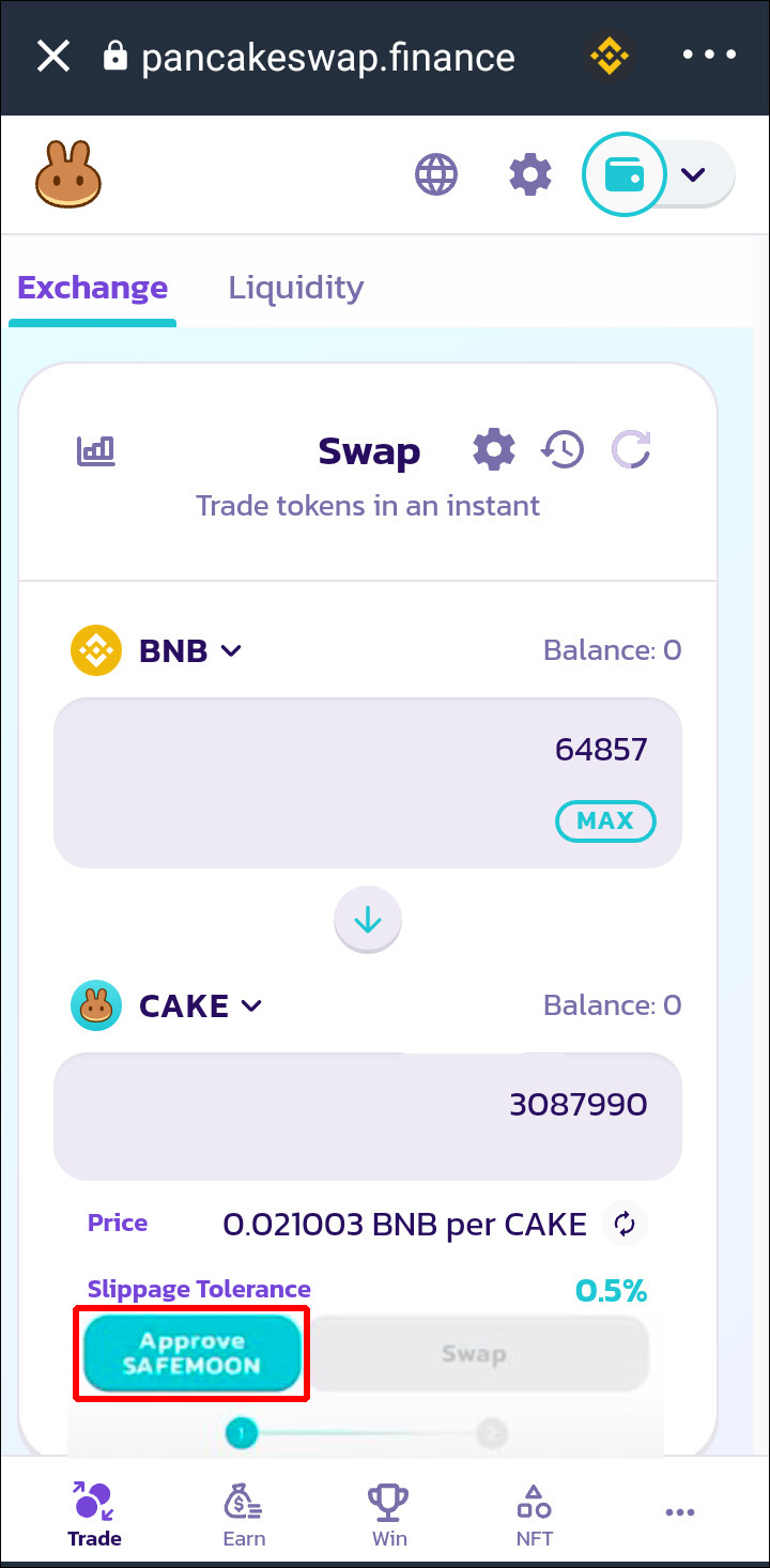 Once you’ve successfully connected it, you can move on to selling tokens. Here, we’ll show you how to sell tokens in Trust Wallet using PancakeSwap, but you can use a different one: