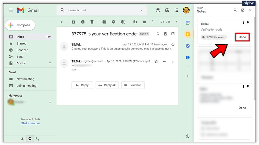 - Launch Google Keep on your device after you have sent your email to it.