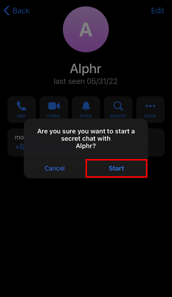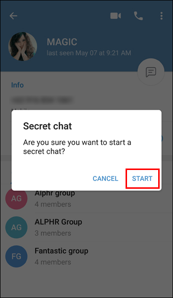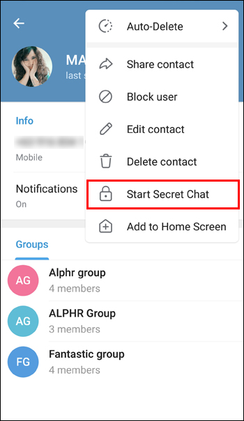 - Pick “Start Secret Chat.”