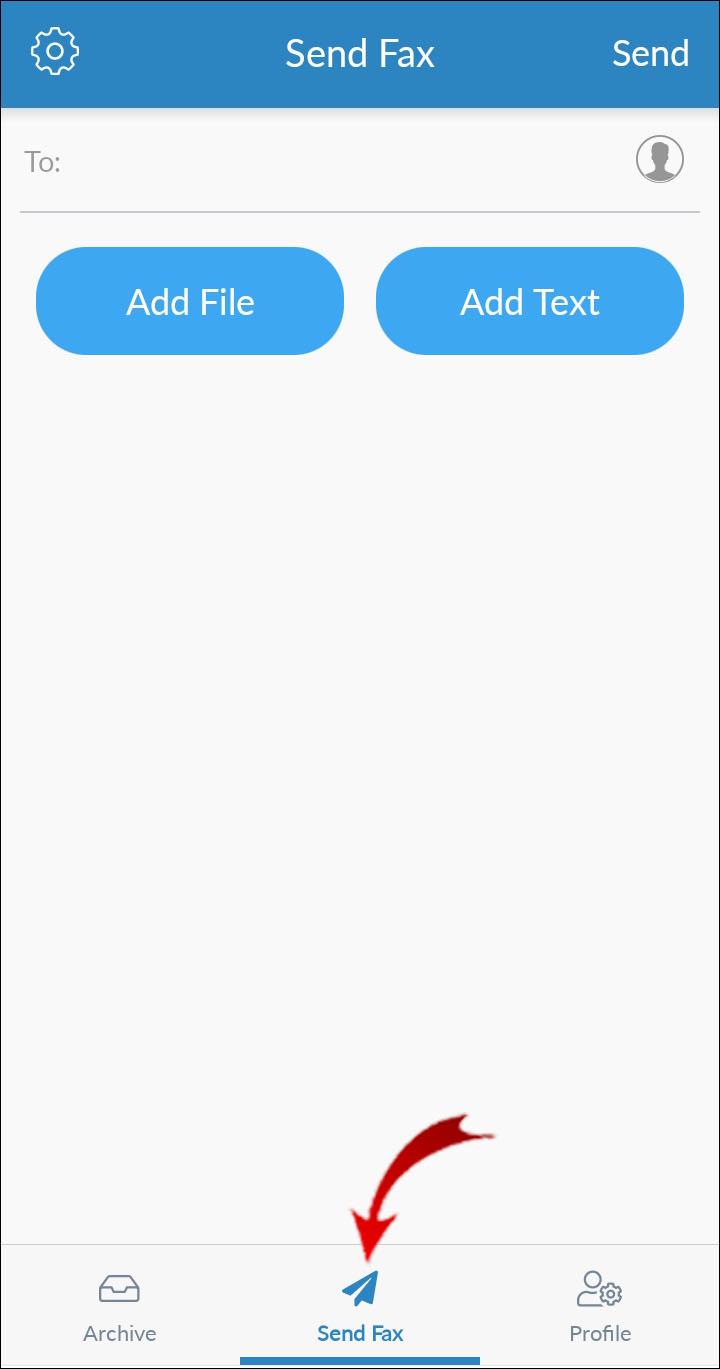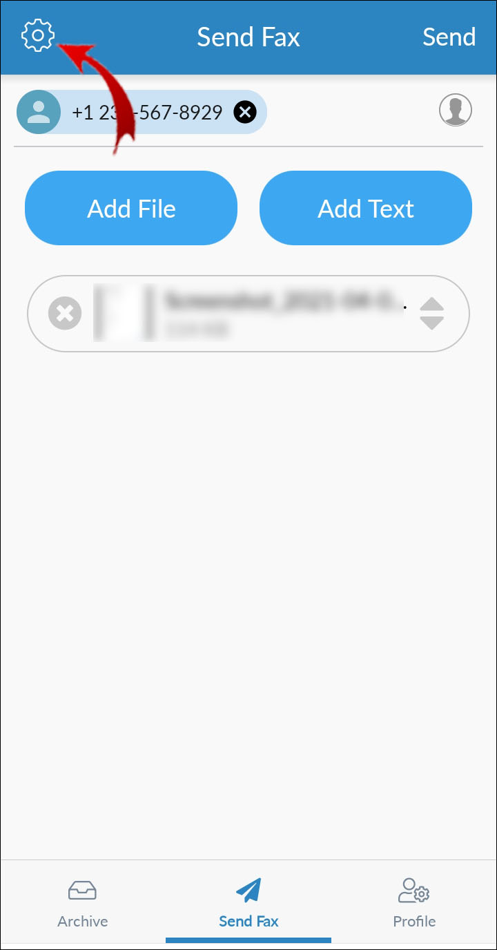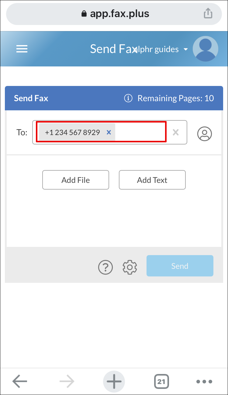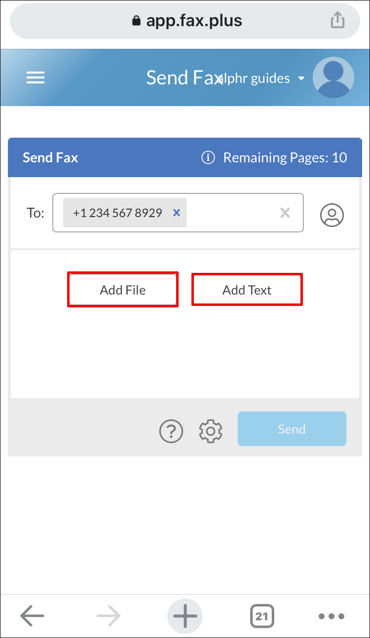 - Launch the FAX.PLUS app and navigate to the “Send Fax” section.