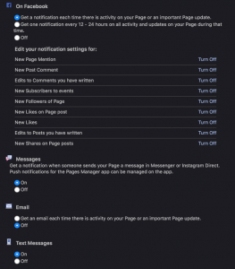 Editing the Page Notification Settings not only provides message notifications but can also provide you with: