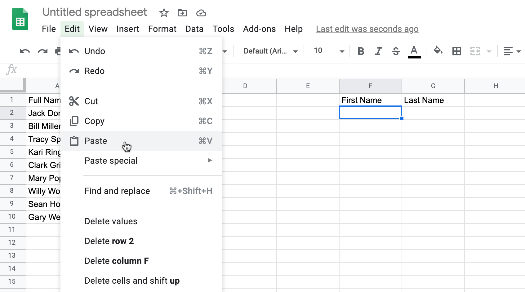 Here is the most straightforward way to split full names into different columns using Google Sheets tools.