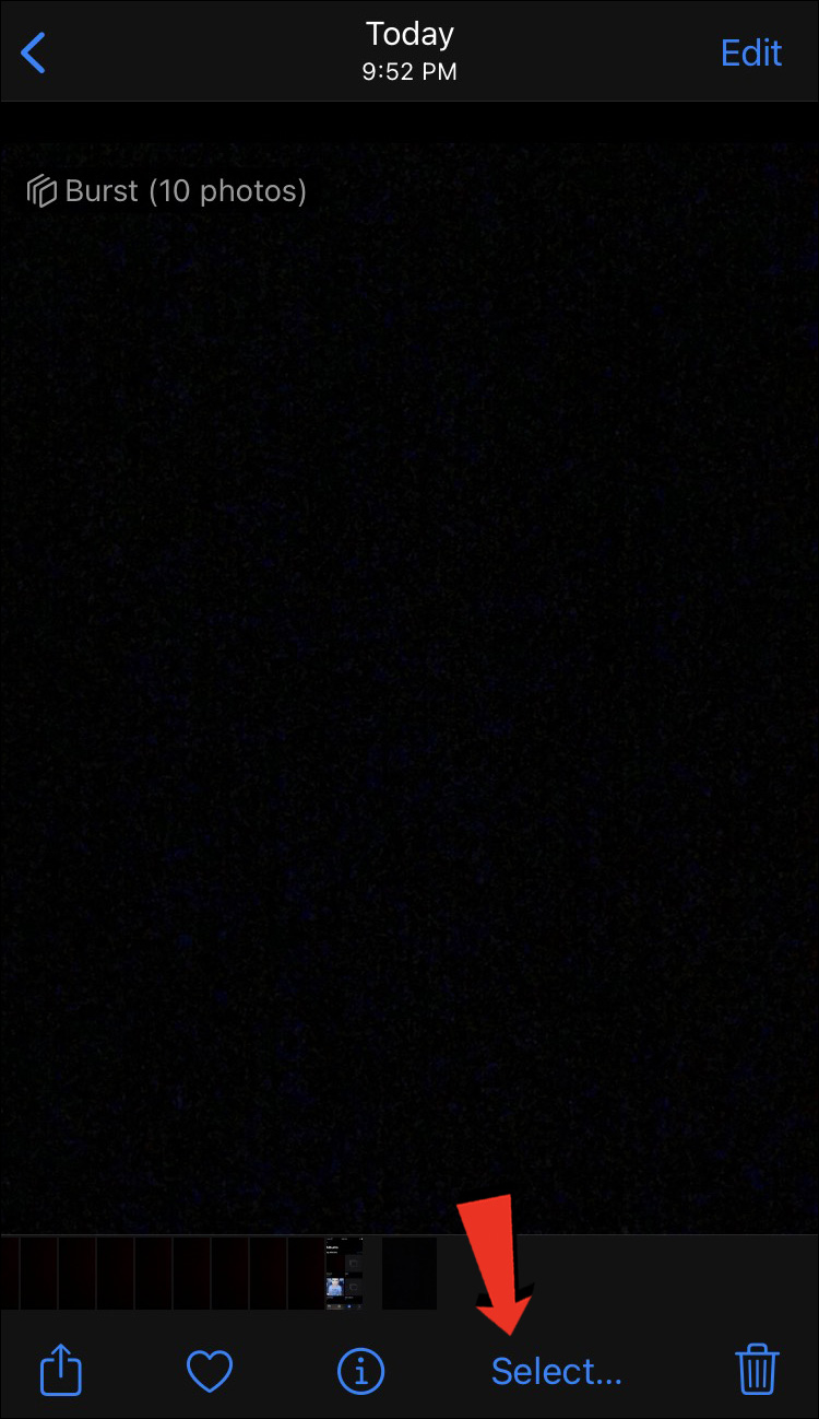 - Open the burst image. You’ll see the “Burst (10 photos)” message in the upper-left corner of the photo.
