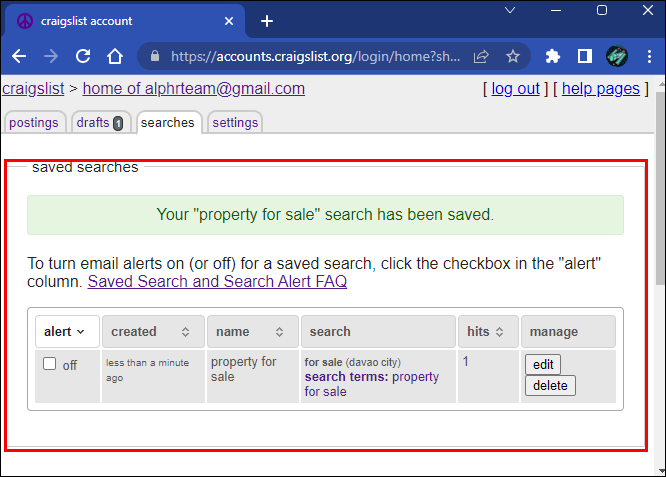 That’s all you need to do. You’ll receive an email from Craigslist when there are new posts that match your search terms. They will be sent to the email that is associated with your Craigslist account. To limit the number of emails you’ll receive, it’s best to be as specific as possible when setting up alerts.