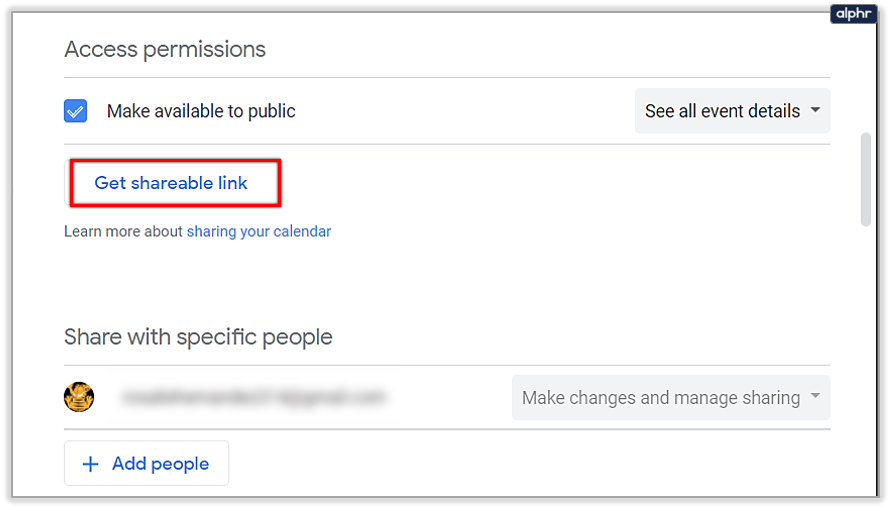 - Your calendar is now shared to the public, but that doesn’t mean a lot on its own, as you need to send a link to people who don’t use Google Calendar to share it with them. To get a link, click the Get shareable link button beneath the option you’ve just used.