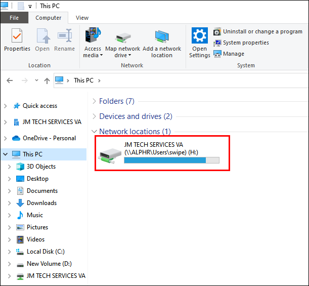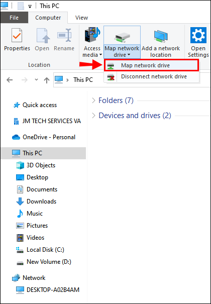 - From the Taskbar, select “File Explorer” > ”This PC” > “Computer” > Map network drive” > “Map network drive.”