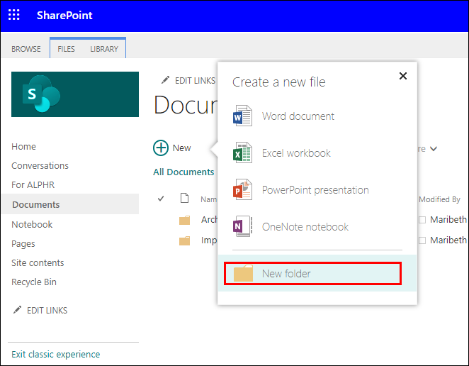 - Launch the SharePoint site where you wish to add the new folder.
