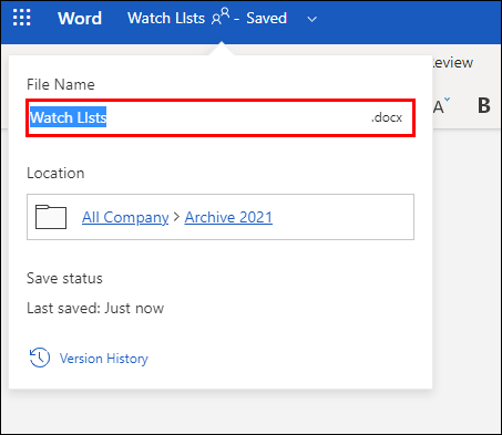 - Select “Show actions,” (the three-dotted menu next to the document) then “Rename” to enter a different name.