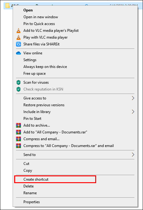 - Select “Create shortcut” towards the bottom of the menu.