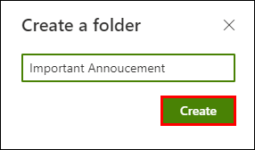 - From the “Create a folder” dialog box, in the “Name” field enter a folder name, then “Create.”