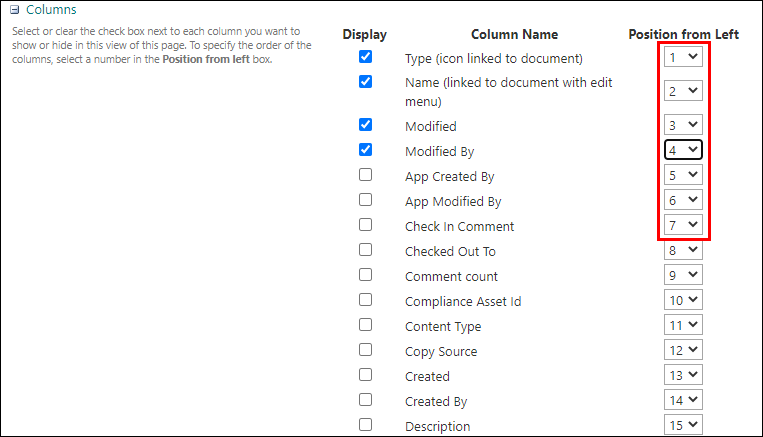 7. Next to the column numbers, choose what order you’d like the columns to display.