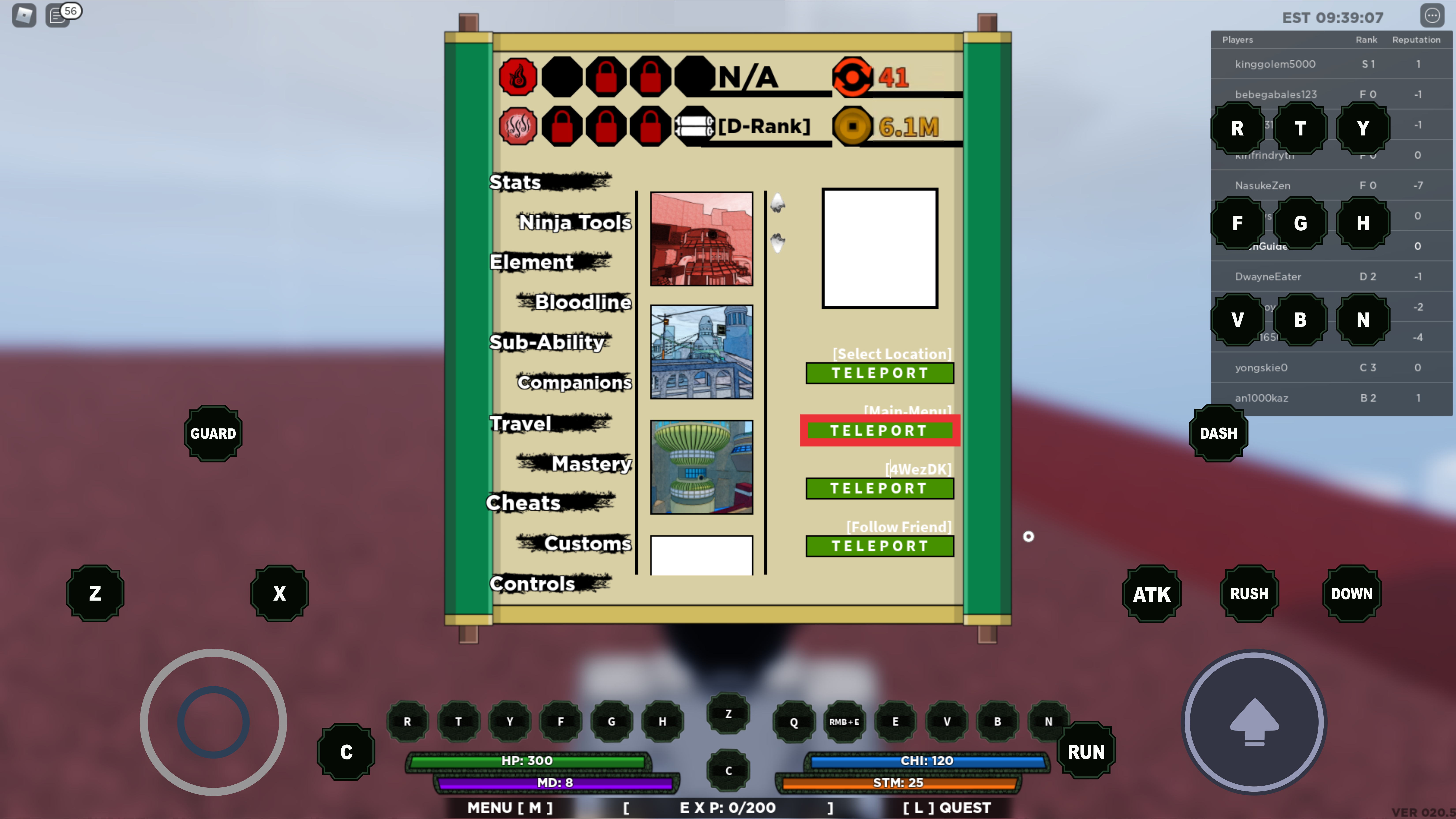 - On the buttons to the right, click on TELEPORT under the title Main Menu.