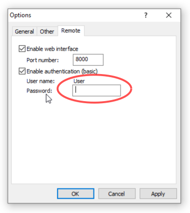 - Optional: For enhanced security, check the box next to Enable authentication (basic). This allows you to set a password, which makes it required whenever someone wants to access the program remotely. Select Apply to save changes.