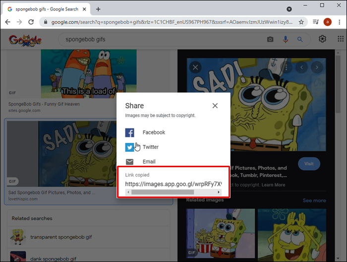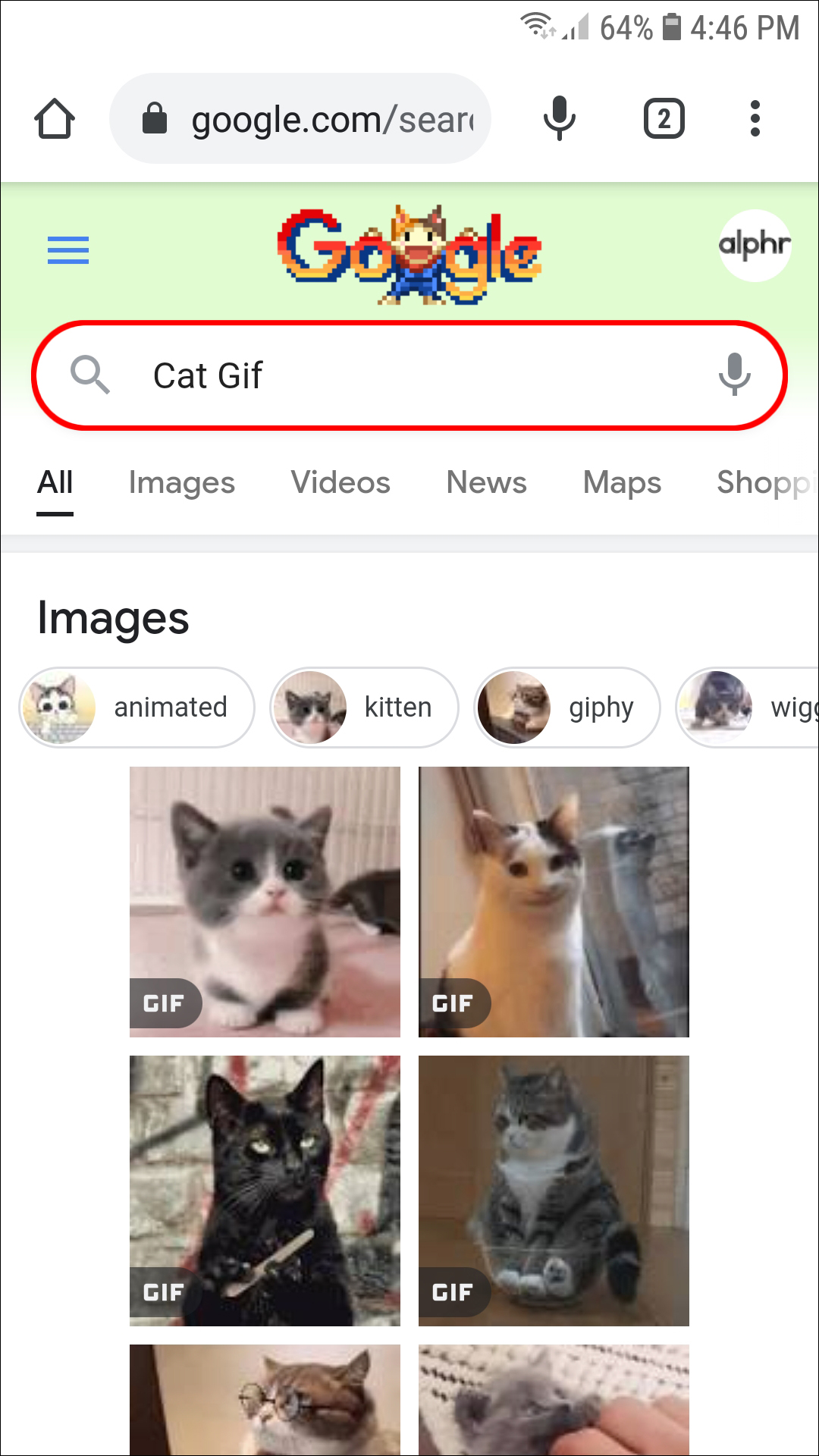 - Open your browser and search for a GIF. Type “gif” at the end to get the most relevant results.