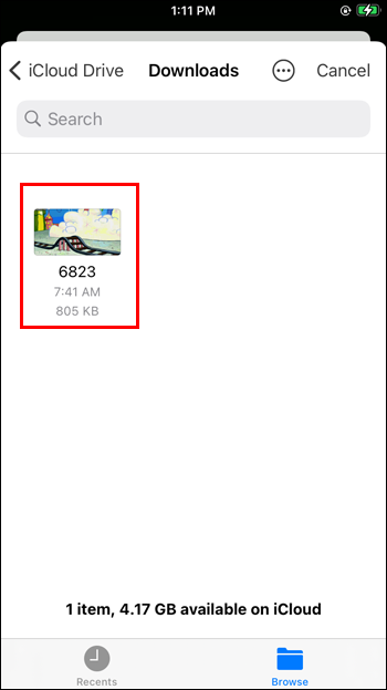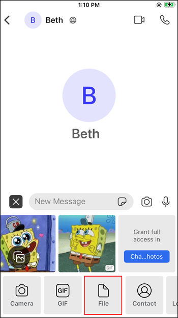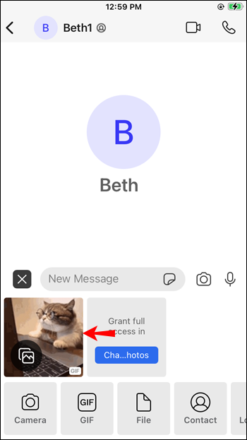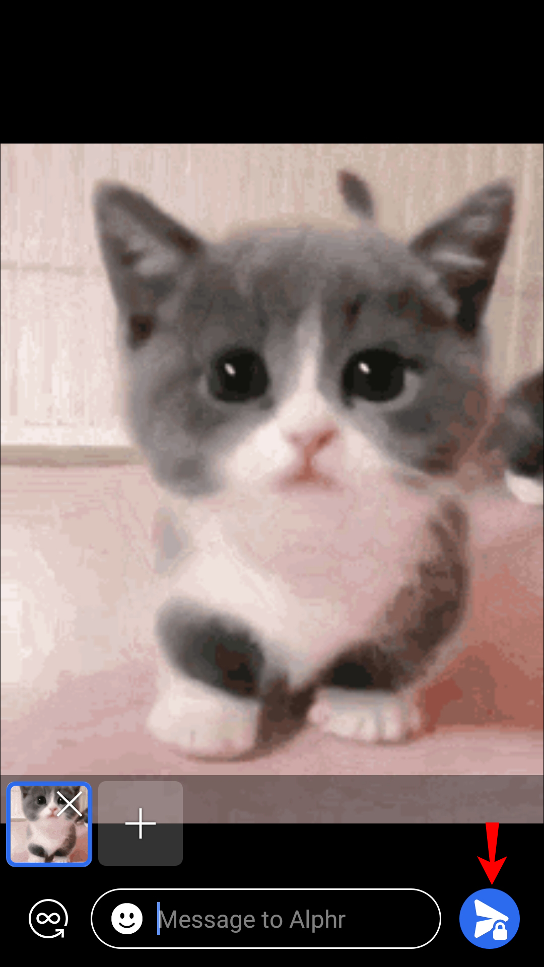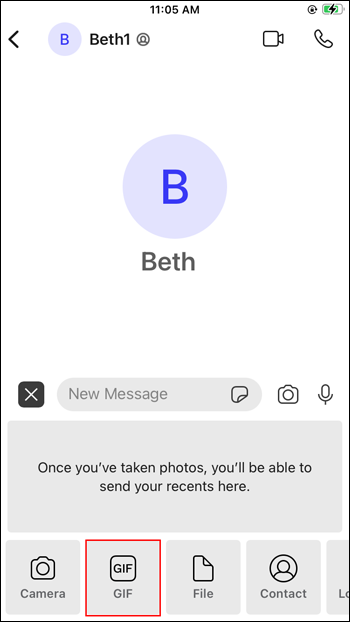 - Recently saved files will appear below. Select the downloaded GIF and tap the arrow to send it.