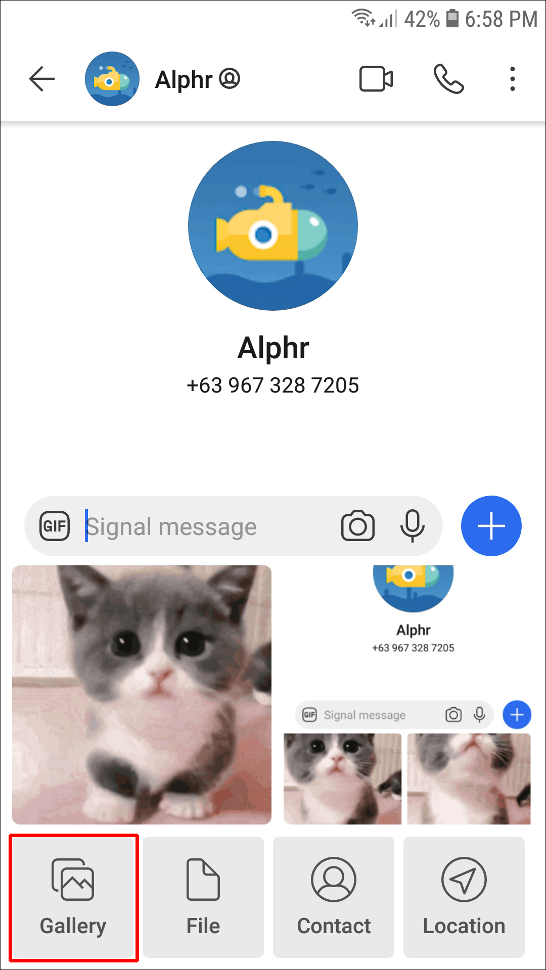 If you’ve created a GIF and want to show it to someone on Signal, follow these steps: