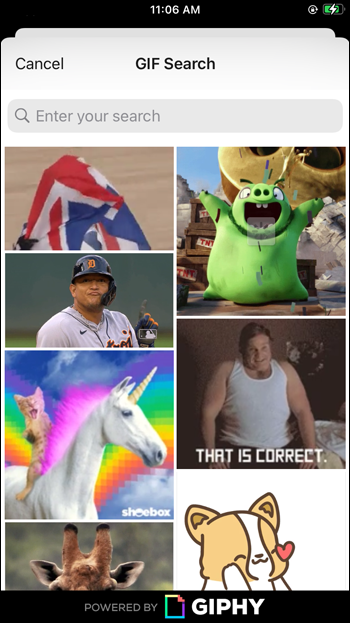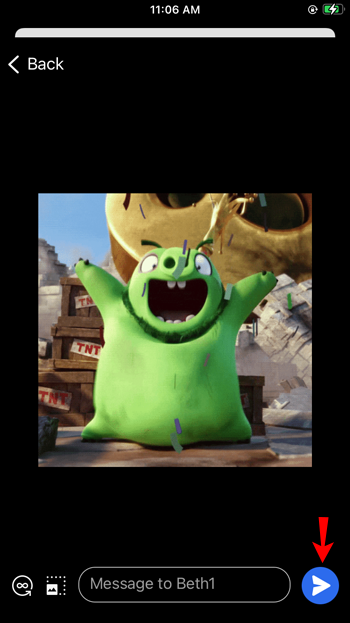 - When you’ve selected a GIF, press the arrow at the bottom-right corner.