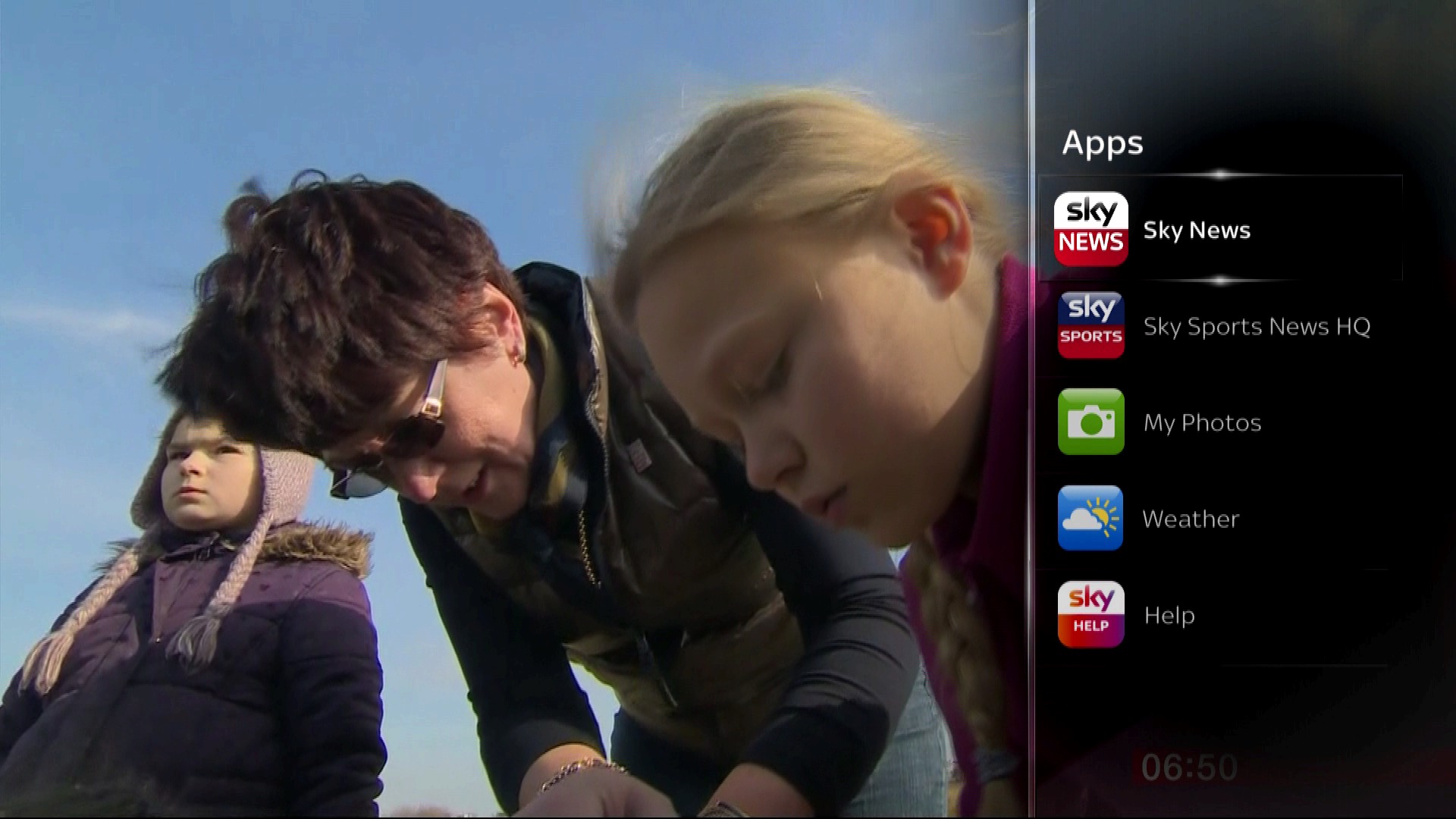 Then there’s the Sidebar menu, accessed using a dedicated button on the remote, which hosts a number of apps that display items alongside the TV programme or movie you’re currently watching. For now, you get Sky News and Sky Sports News headlines, plus the ability to show a selection of your own photos, the weather and help menus.